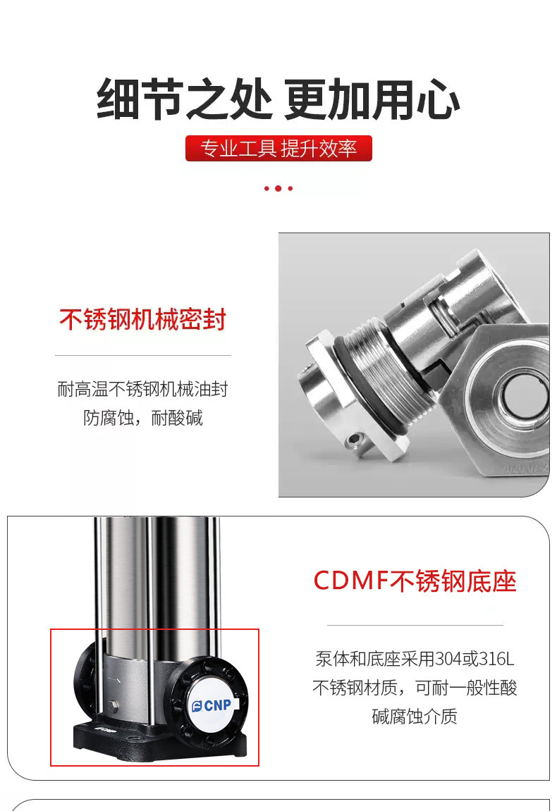 南方CDM/CDMF系列為參照歐洲標(biāo)準(zhǔn)最新自主研發(fā)的新一代、高效率非自吸立式多級(jí)離心泵。產(chǎn)品采用全新的工業(yè)設(shè)計(jì),能效指標(biāo)達(dá)到MEI≥0.7,具有節(jié)能、低噪、環(huán)保及機(jī)構(gòu)緊湊、外觀美觀、重量輕、使用維護(hù)方便、可靠性高等特點(diǎn)。