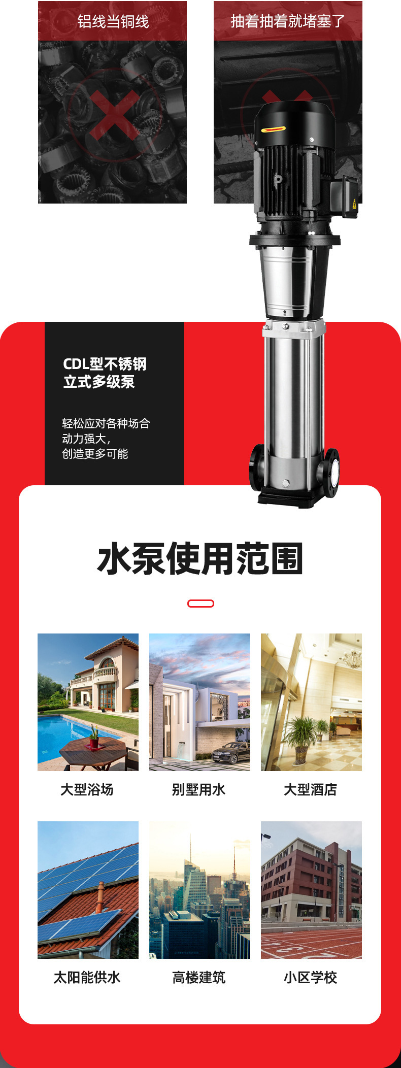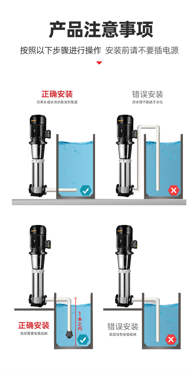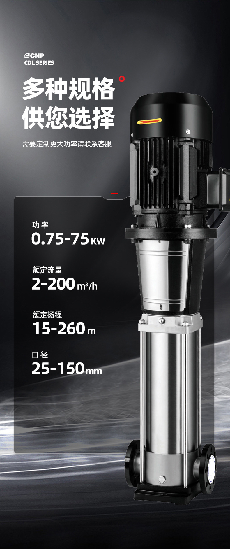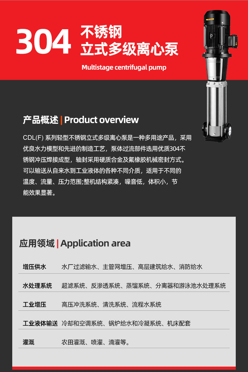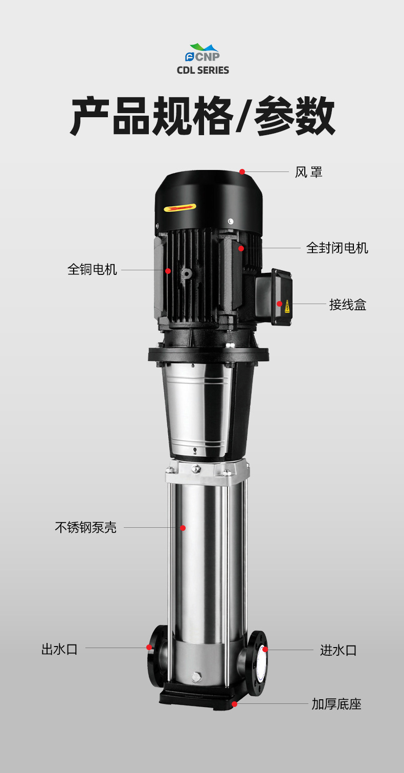 產品說明:南方cdl,cdlf非自吸輕型立式多級離心泵,電機軸通過聯軸器直接與泵軸聯接,葉輪導葉采用不銹鋼板沖壓焊接或不銹鋼精密鑄造制成,泵進出水口在泵底同一直線上(可配iec或nema電機)。