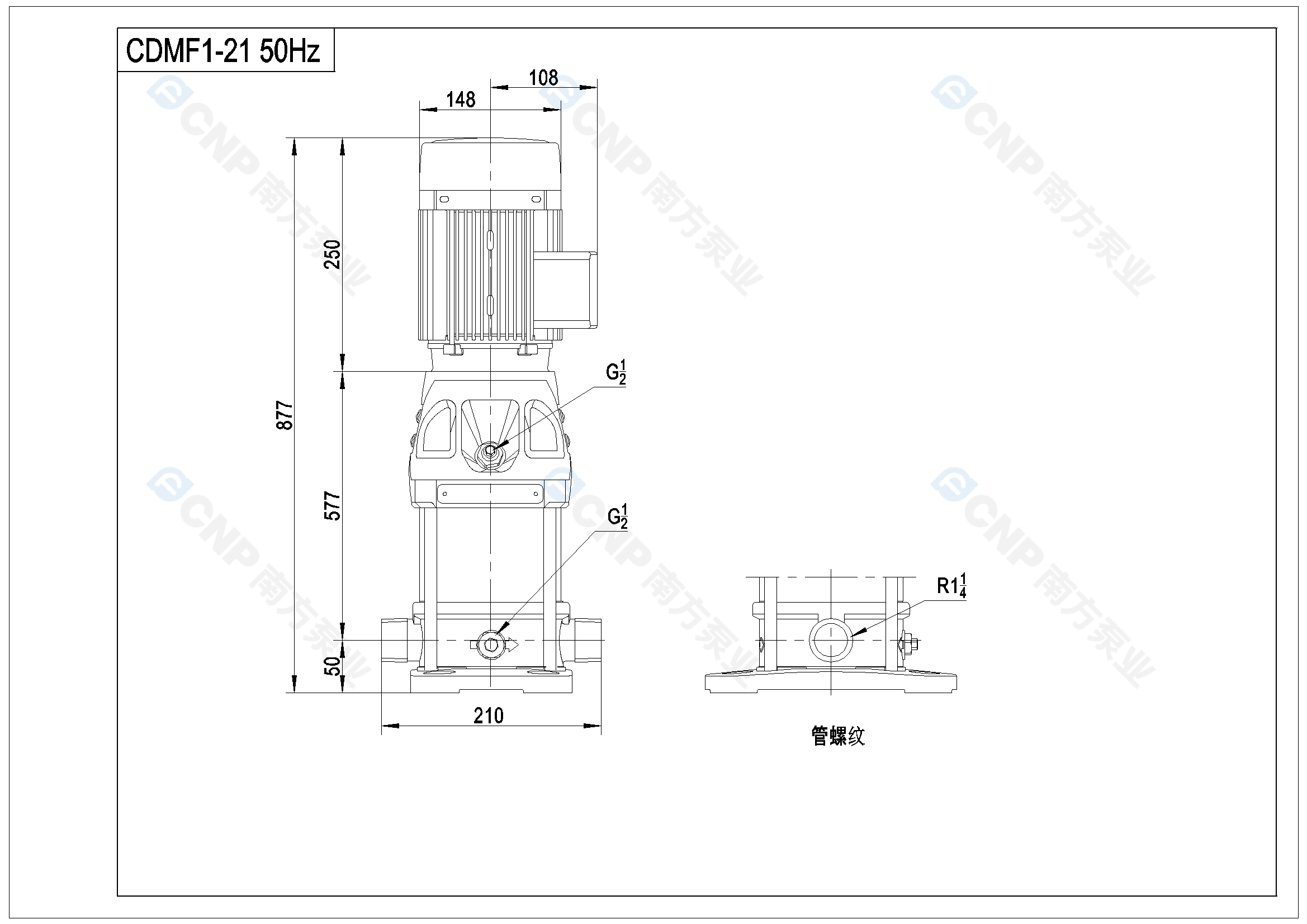需要南方泵CDM1-21外形CAD文件 請加銷售人員微信索取
