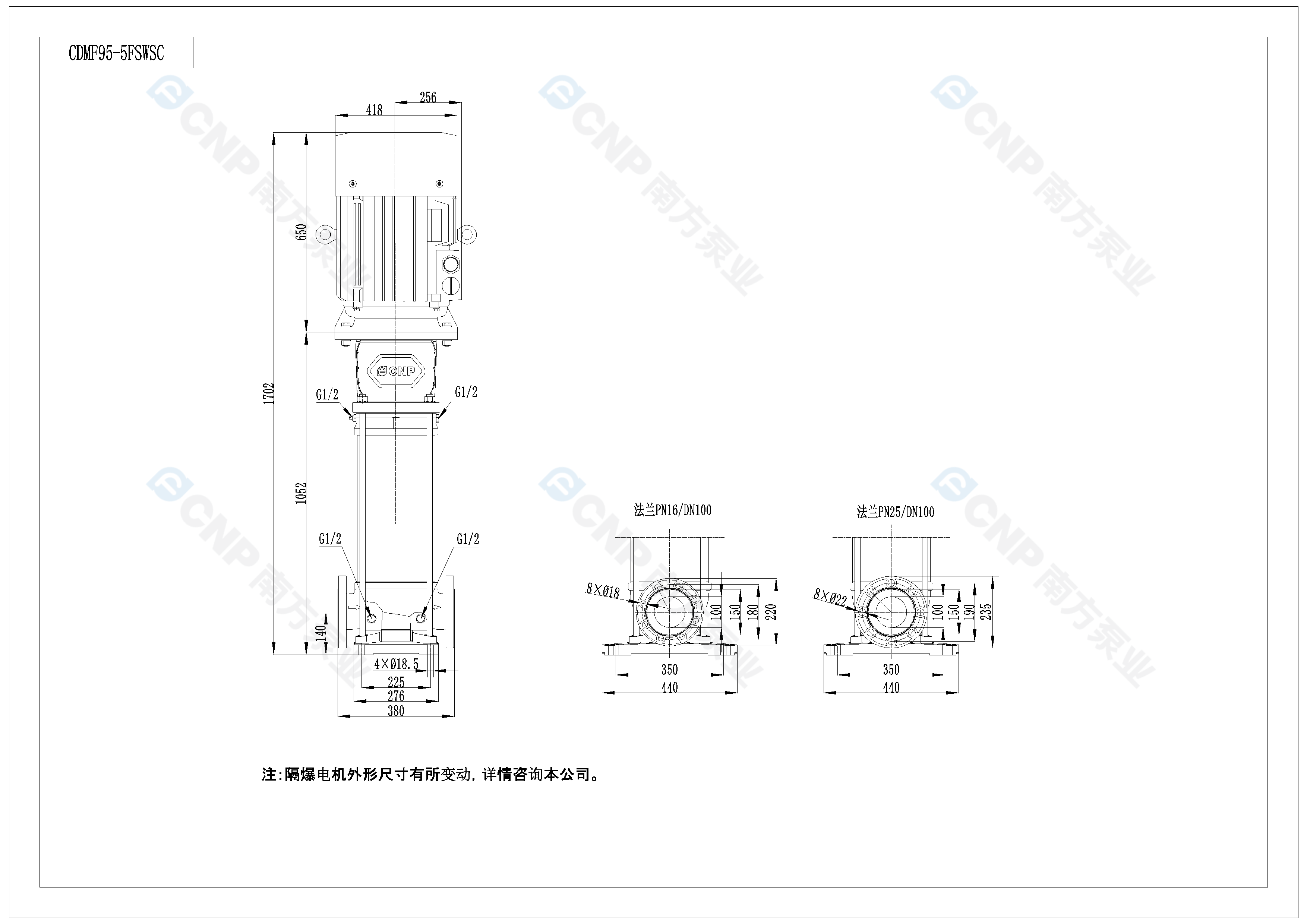 您的位置: 南方泵業(yè) > 在線選型 > 多級泵 > CDM(F)(50Hz) > CDM95-5