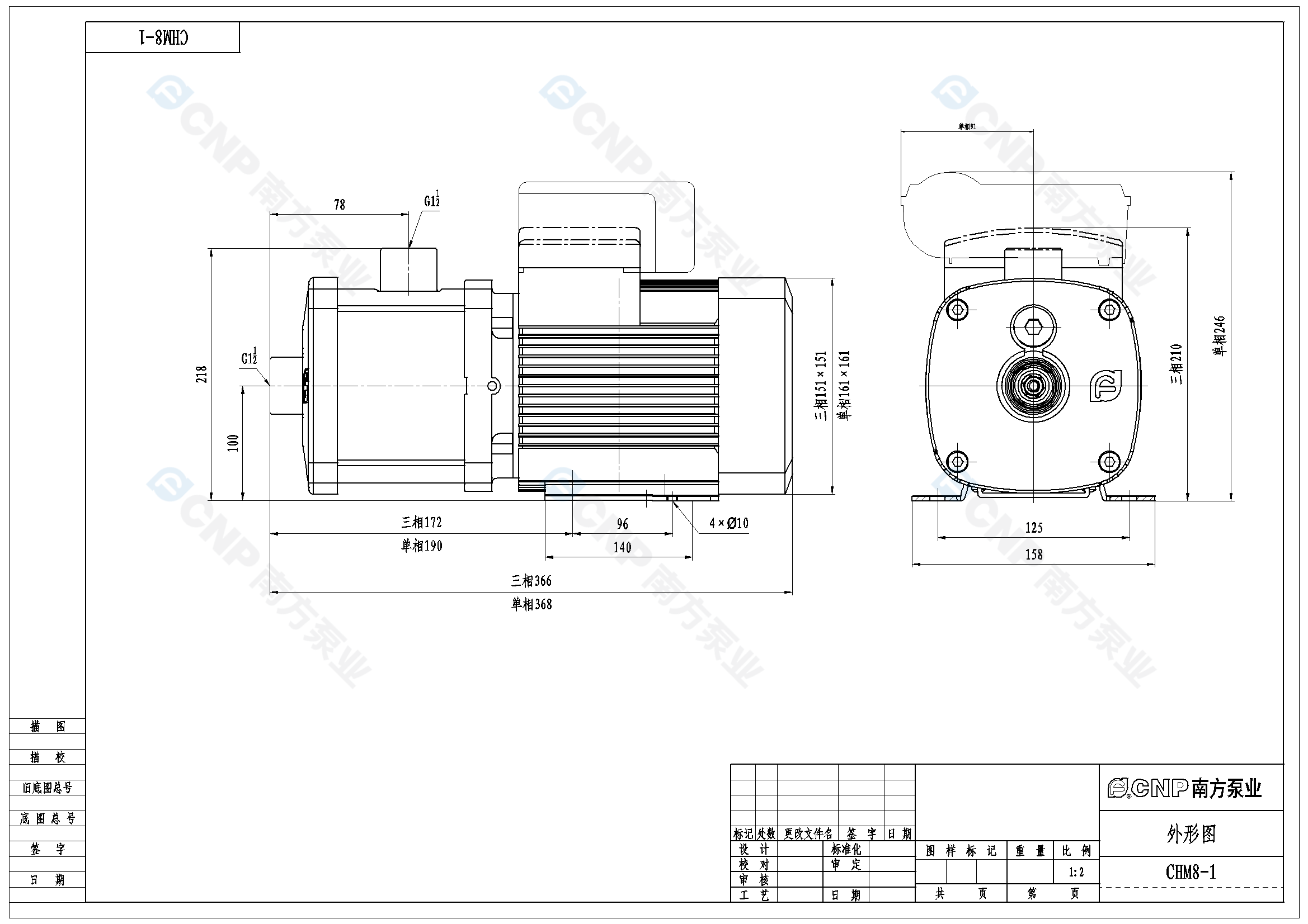 需要南方泵CHM8-1外形CAD文件 請加銷售人員微信索取