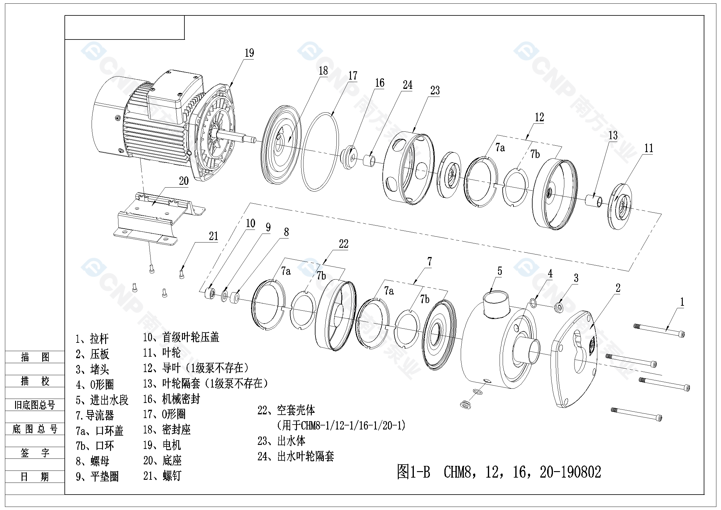需要南方泵CHM8-2爆炸圖CAD文件 請加銷售人員微信索取