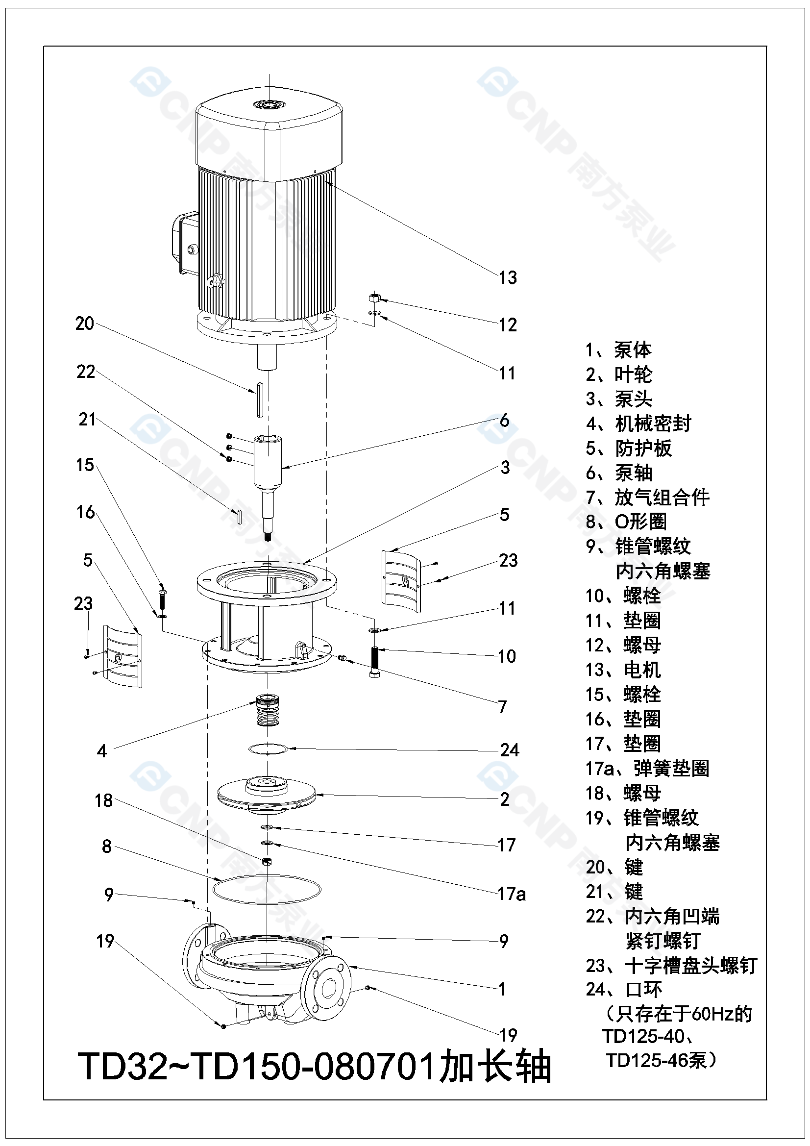 需要南方泵TD40-20G/2爆炸圖CAD文件 請加銷售人員微信索取