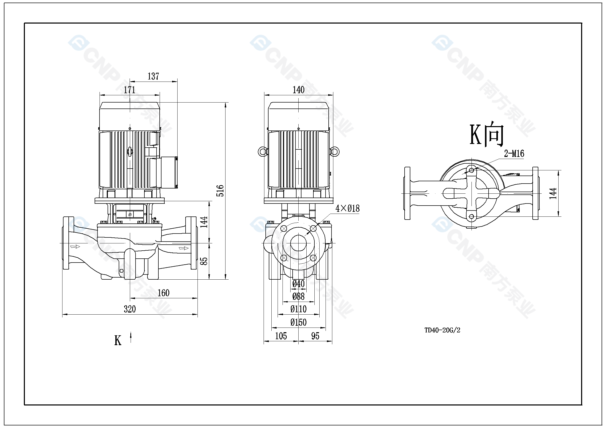 需要南方泵TD40-20G/2外形CAD文件 請加銷售人員微信索取
